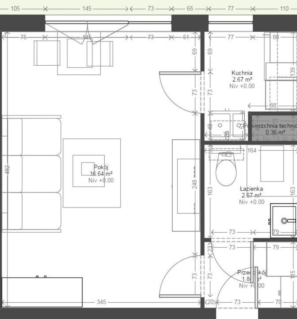 Cena całkowita najmu: 1537 zł/mc + opłaty ryczałtowe za media 300 zł/mc