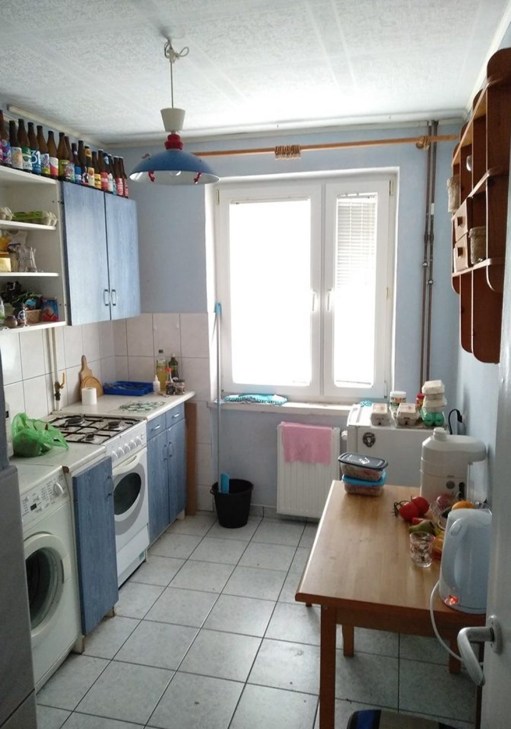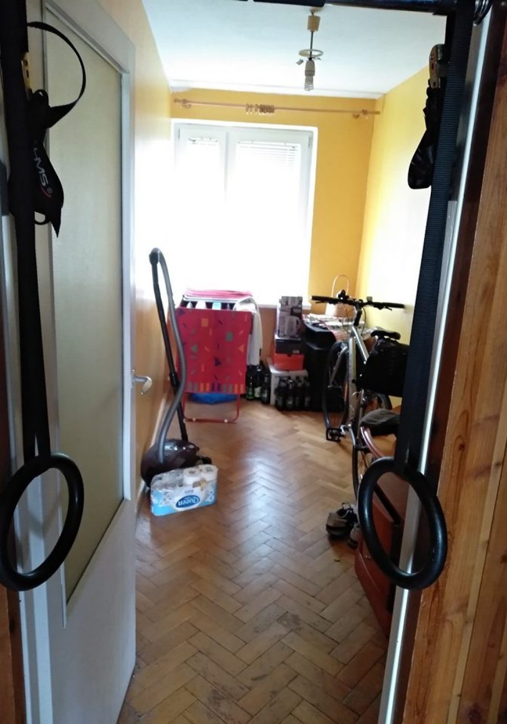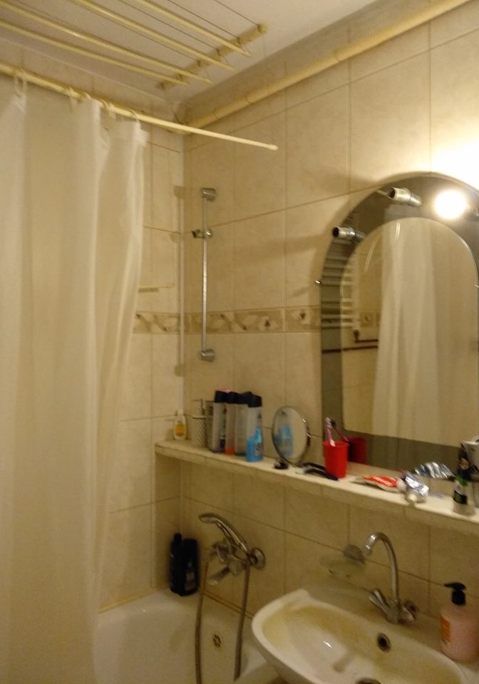 Mieszkanie na 3 piętrze, na przystanek autobusowy 3 minuty (jak trzeba to poniżej minuty). Najmniejszy pokój jest traktowany jako pmieszczenie gospodarcze (suszarnia/rowerownia/graciarnia – generalnie trzyma się tam rzeczy, których nie chce się trzymać w swoim pokoju).