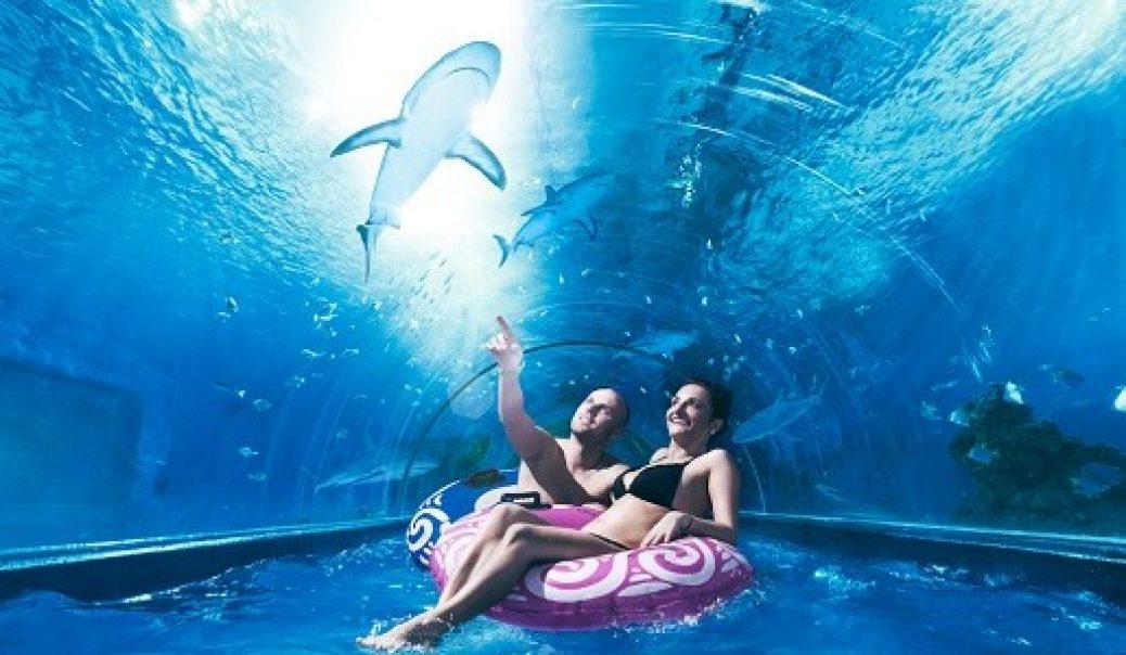Bliskie obcowanie z rekinami na wygodnym pontonie będzie z pewnością ogromnym przeżyciem dla każdego dziecka. A dodając do tego zjazd szybką zjeżdżalnią i oszklony tunel w środku rajskiego akwarium – atrakcja zrobi wrażenie również na dorosłych.