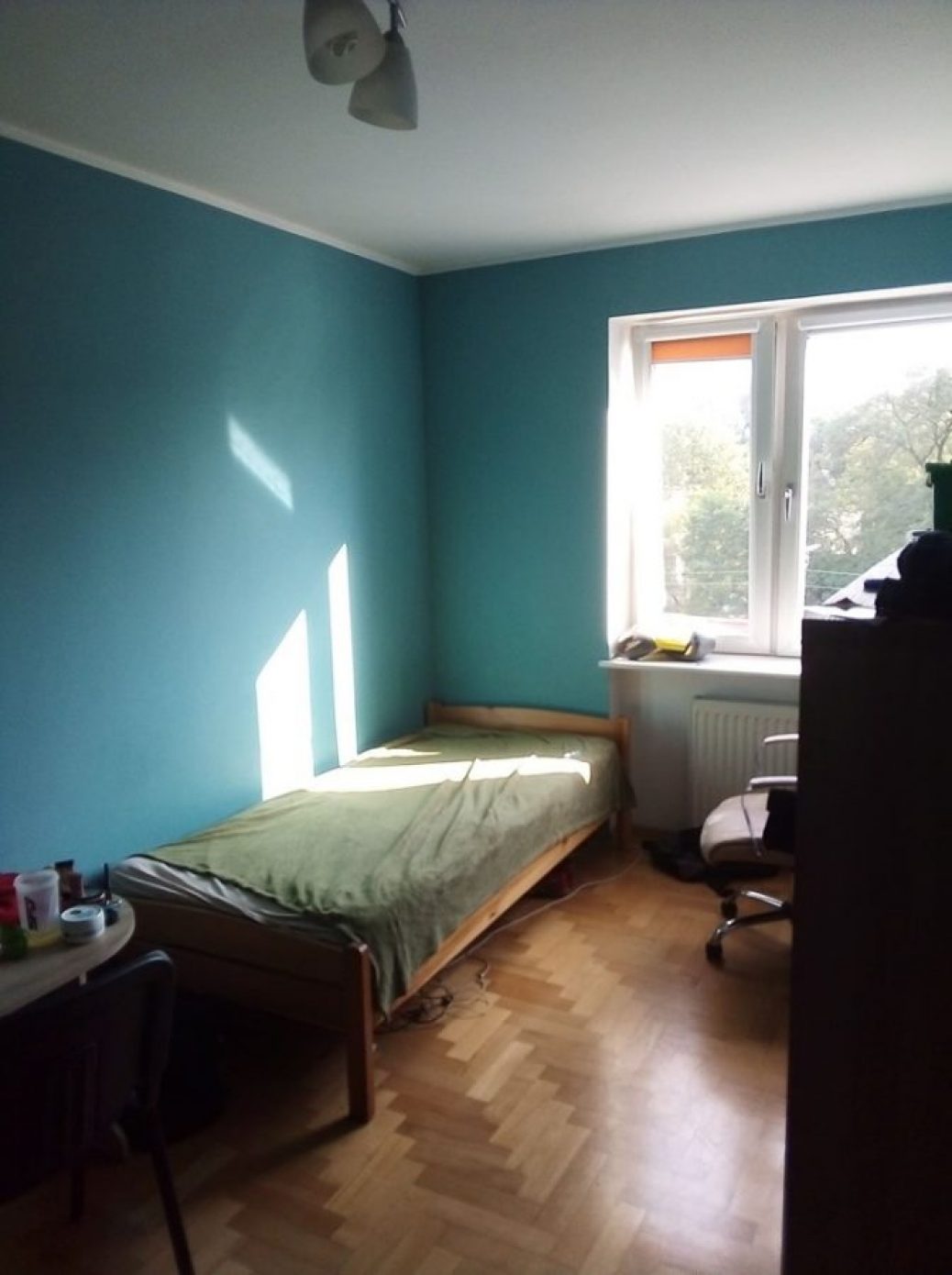 Znajdujący się w bloku na drugim piętrze. Mieszkanie 115m2, 4 pokoje. Aktualnie zajęte są dwa pokoje przez studentów.