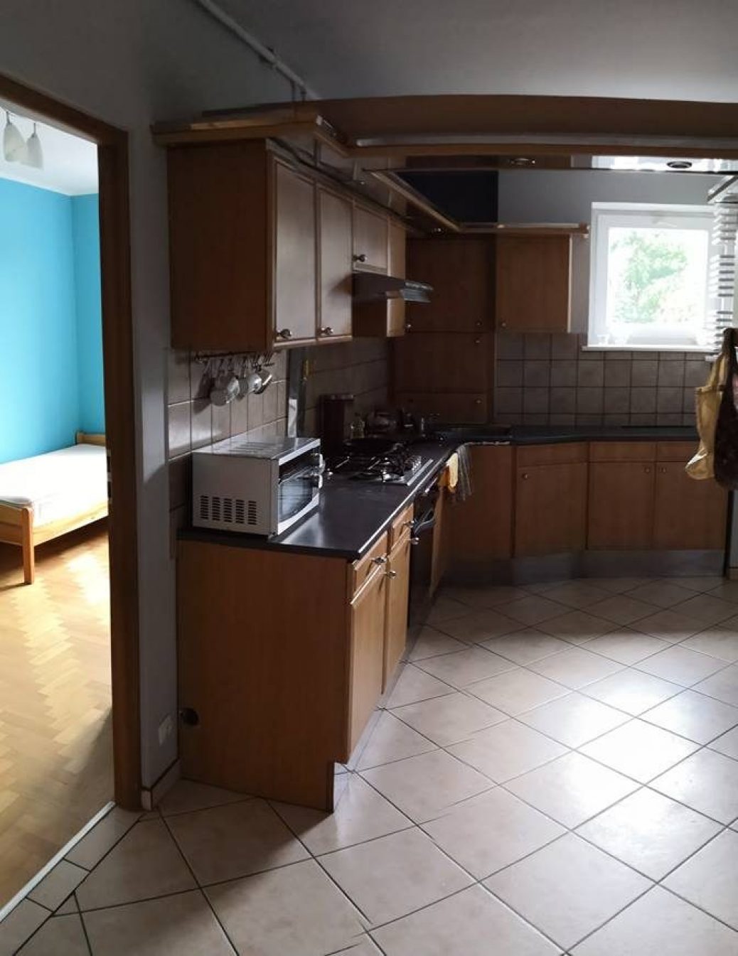 Mieszkanie składa się z czterech pokoi, kuchnia w zabudowie wyposażona w sprzęt AGD (lodówka, kuchenka gazowa, piekarnik, mikrofalówka), jadalni (stół, krzesła), korytarza (szafa typu komandor); dwóch łazienek (pralka, szafki łazienkowe, wanna/prysznic).Koszt najmu: 900 zł + ew. miejsce parkingowe 200 zł