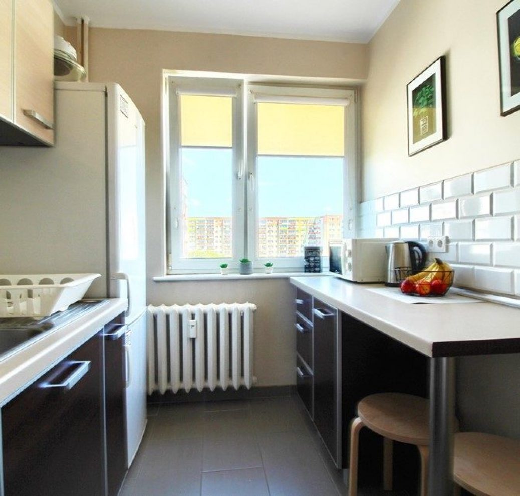 W mieszkaniu oddzielna kuchnia z oknem.