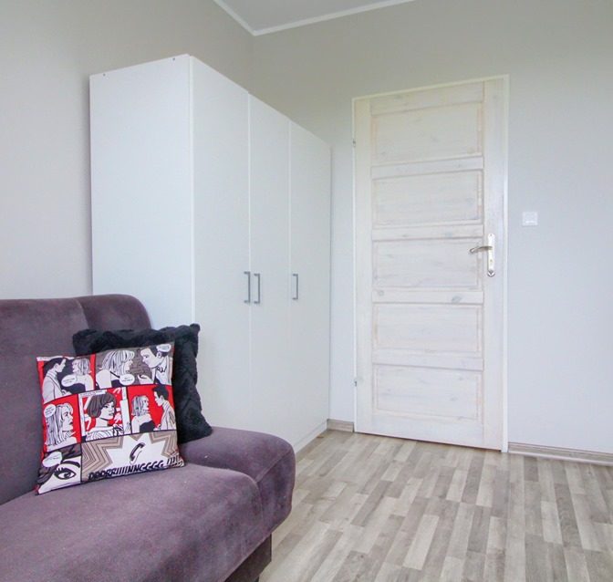 Mieszkanie oraz pokoje są w pełni umeblowane. Na wyposażeniu znajduje się lodówka, płyta gazowa, piekarnik, pralka, deska do prasowania, suszarka do ubrań, żelazko, odkurzacz.