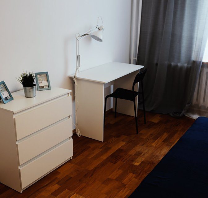 Wyposażone jest wygodne łóżko ,biurko i krzesło.