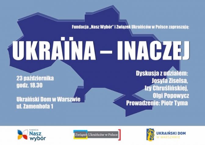 23 жовтня о 18.30 запрошуємо до Українського дому у Варшаві (вул. Заменхофа 1) на дискусію “Україна — інакше”, за участю: Йосифа Зісельса, Ізабелли Хруслінської, Ольги Попович .