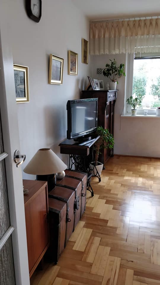 Квартира находится на втором этаже и занимает 64м2. 3 отдельные комнаты: 22м2 зал и две спальни по 8 м2. С зала есть выход на балкон. Ванная комната и туалет отдельные. Кухня 6м2, обновлена 3 года назад, тогда же был сделан ремонт во всей квартире. Также есть подвал. Низкие выплаты по коммунальным платежам, приблизительно 435 зл в месяц.