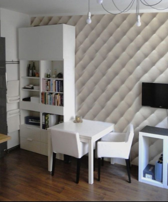 Mieszkanie (35m2) składa się z łazienki, salonu połączonego z kuchnią oraz sypialni z garderoba. Urządzono je stylowo i funkcjonalnie, mnóstwo szafek i półek gwarantuje miejsce do przechowywania. Na wyposażeniu jest rozkładana dwu-osobowa kanapa, stół z wygodnymi krzesłami oraz TV z kablówką. Aneks kuchenny jest wyposażony w lodówkę w zabudowie, piekarnik i płytę elektryczną. W łazience znajduje się pralka. Prysznic jest wyposażony w deszczownicę.