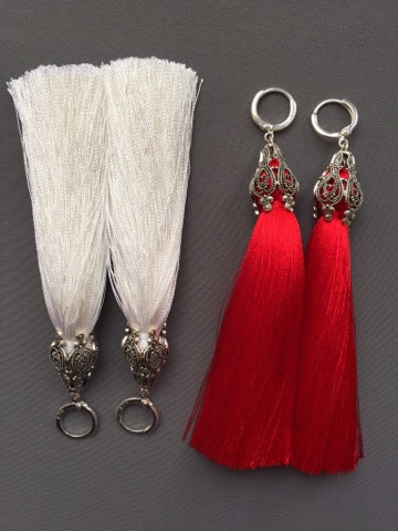 На прохання модниць-красунь нова колекція сережок-китиць. Шовкова нитка, високоякісна посріблена фурнітура. Можуть бути виготовлені в різних кольорах.