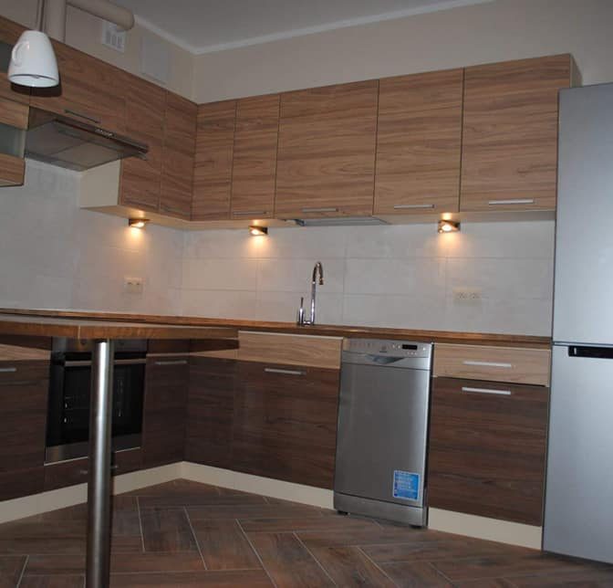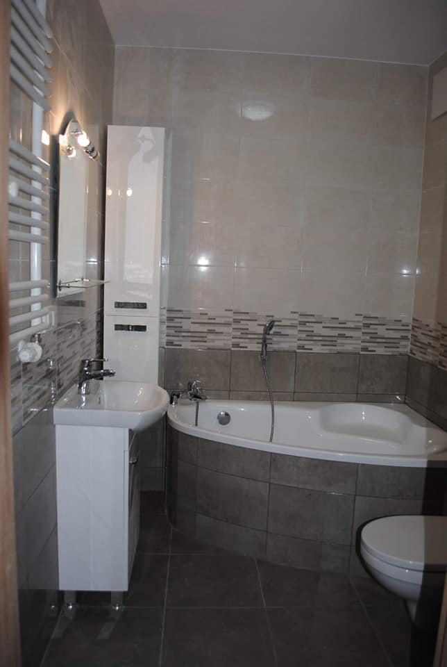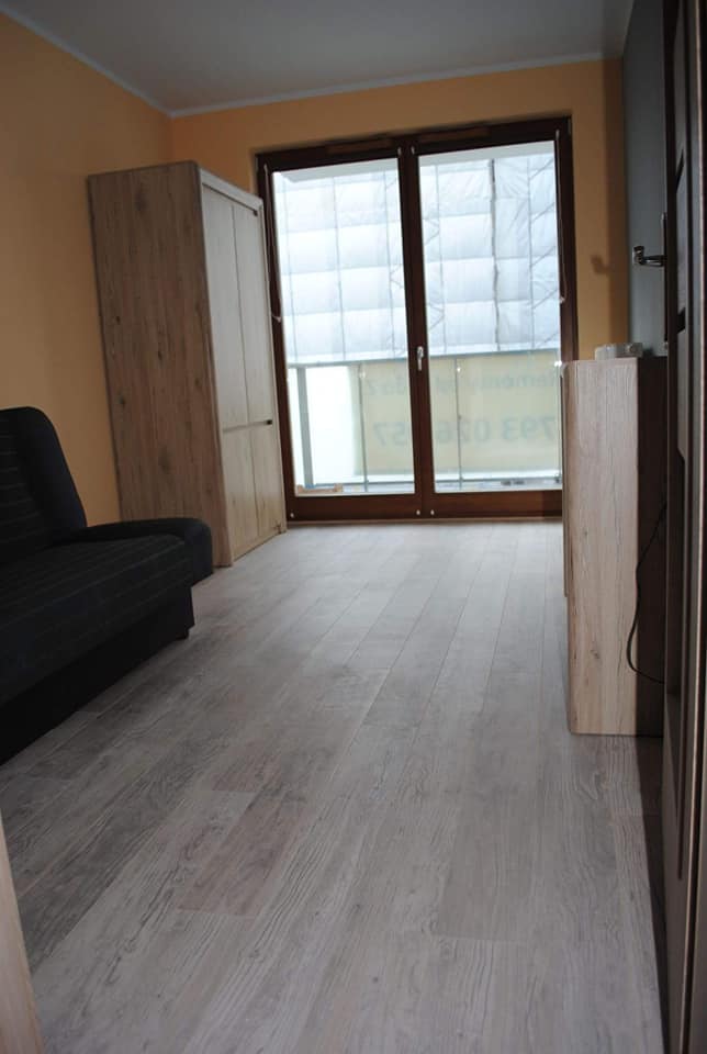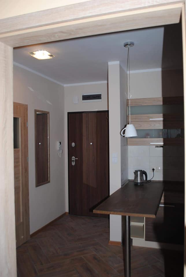 Mieszkanie wyposażone (wszystko nowe): duża szafa wnękowa; wyposażona łazienka (WC, pralka, wanna z prysznicem), energooszczędne oświetlenie LED; wyposażona kuchnia (duża lodówka z zamrażarką, płyta indukcyjna; piekarnik, zmywarka, garnki, nakrycia stołowe); w każdym pokoju: podwójne łózko – wersalka, komoda, szafa ubraniowa, ława).