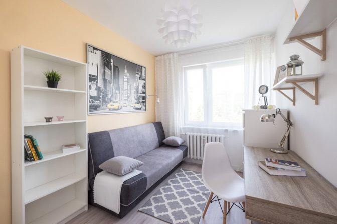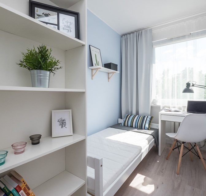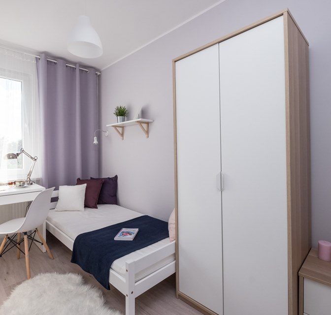 Pokój, który Ci proponuję jest oddzielny, zamykany na klucz. Wyposażony w nowe meble (łóżko z wygodnym sprężynowym materacem, duża szafa na ubrania, komoda, regał na książki, biurko z krzesłem oraz suszarkę na pranie).
