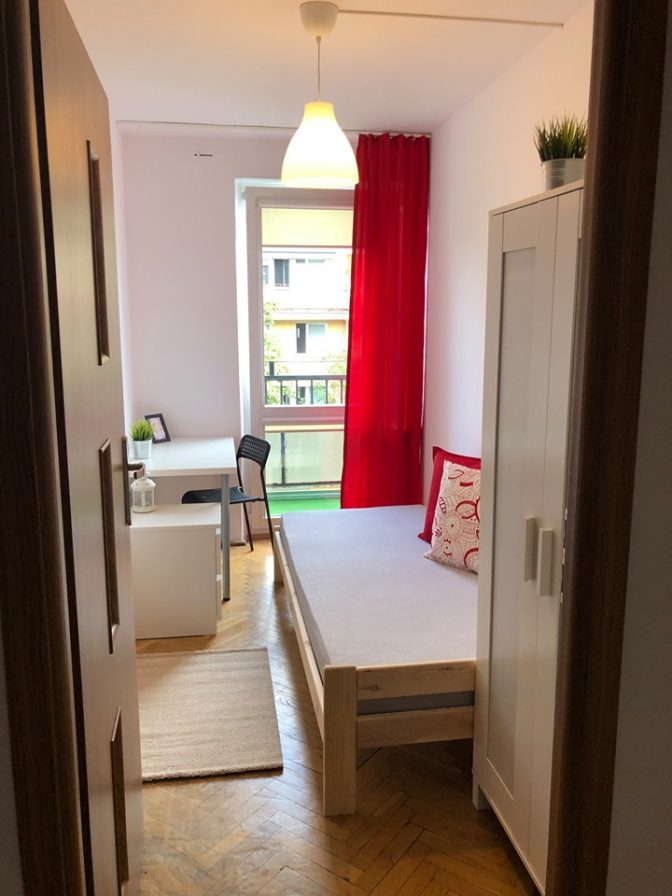 Pokój ma dodatkowo duży 6-metrowy balkon z widokiem na panoramę miasta w tym na Stadion Narodowy.