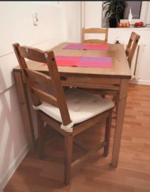 ✅ Mieszkanie jest umeblowane i wyposażone. Są garnki, talerze, sztućce, deska do prasowania, suszarka, lodówka i pralka. Niestety nie ma zmywarki, ale można się przyzwyczaić. 🙂