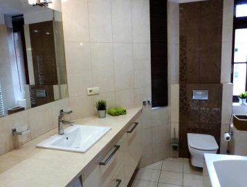 W mieszkaniu jest piękna i duża łazienka oraz przestronna w pełni wyposażona kuchnia.