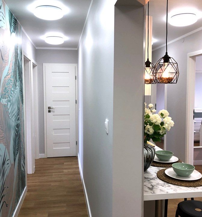 W mieszkaniu znajduje się pralka, odkurzacz, żelazko, deska do prasowania. Duże szafy i komody w pokojach zapewniają komfort przechowywania. Dodatkowe pomieszczenie gospodarcze na np walizki badz inne wieksze rzeczy. Do dyspozycji lokatorow jest rowniez odremontowana piwnica, np. na rowery. Przed budynkiem duży bezplatny parking.