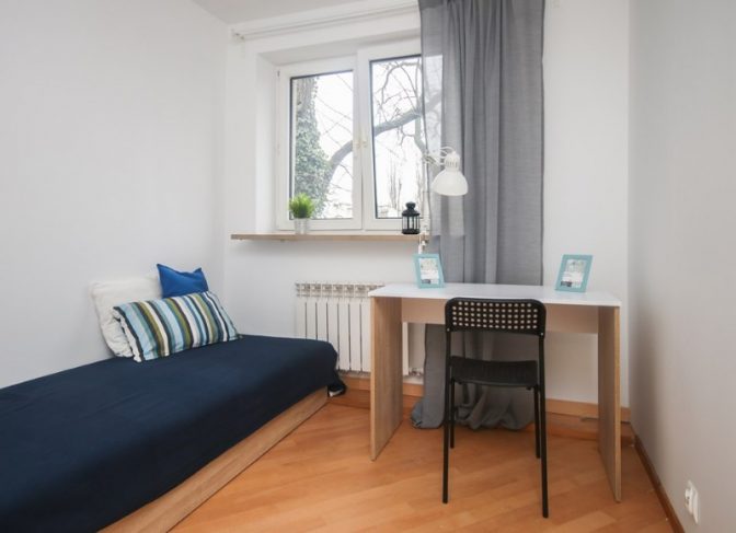 Wyposażone są w biurko, krzesło, pojemną szafę oraz wygodne łożko na bonellach.