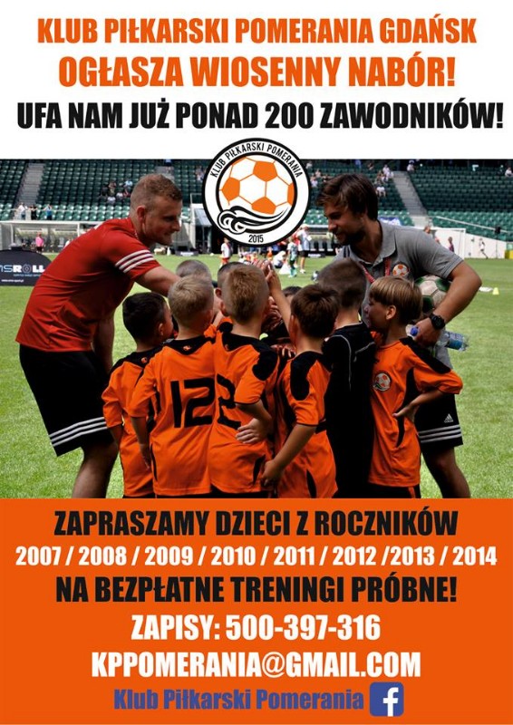 Футбольний клуб Pomerania Gdańsk оголошує весняний набір!