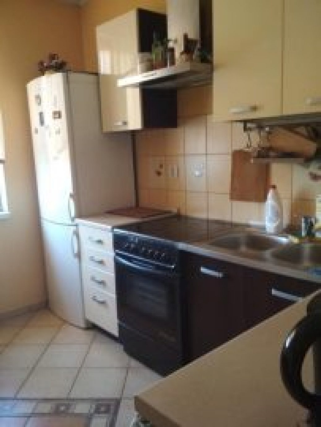 -Вся техніка є ( пральна машина, холодильник, мікрохвильова піч, електричний чайник, праска) також є сушилка для одягу, весь посуд, дошка для прасування одягу).