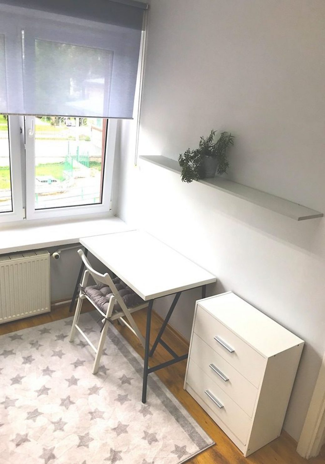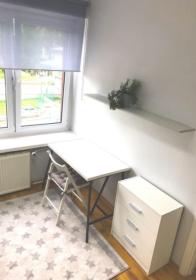 Mieszkanie jest świeżo po remoncie, posiada dużą kuchnie i łazienkę. Znajduję się w spokojnej, dobrze skomunikowanej (5min do skm) dzielnicy. W mieszkaniu są cztery pokoje jednoosobowe przewidziane na wynajem. Kuchnia jest w pełni wyposażona (talerze, sztućce, kubki, szklanki, garnki itp.)
