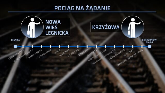 Таку ідею польські залізничники запозичили в чеських колег, де на станціях, з яких користується мала кількість пасажирів, люди мусять самостійно зупиняти потяги. Дольношльонська залізниця, на пробу, визначила поки дві станції «на вимогу». За будь-яких обставин, потяги при наближенні до цих станцій будуть збавляти хід. Залізничники сподіваються, що завдяки тому, що потяги не зупинятимуться зайвий раз на станціях із відсутністю пасажирів, вдасться зекономити на експлуатаційних витратах і на пальному.
