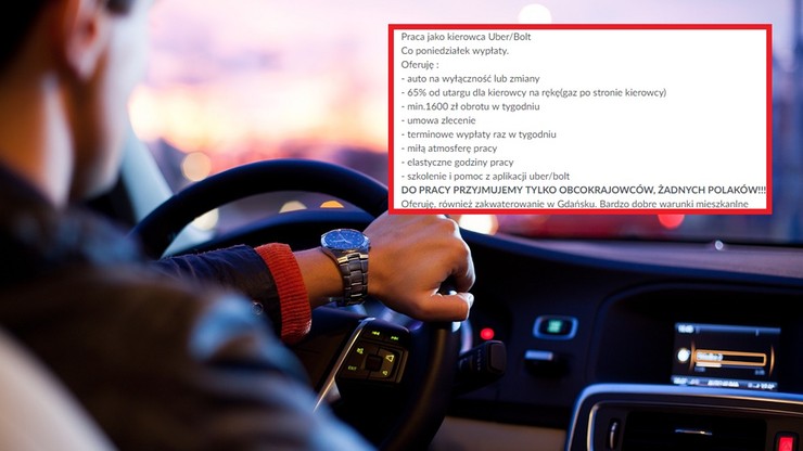 «Повну або часткову оренду автомобіля», «навчання і допомогу в обслуговуванні аплікації» і «приємну атмосферу в праці» запропонував кандидатам у водії працедавець з Гданська, але при цьому уточнив, що візьме на роботу «тільки іноземців, жодних поляків». Як розповідає polsatnews.pl, оголошення на цьому тижні опублікували на одному з загальнопольських порталів оголошень. Автор оголошення пообіцяв працевлаштування на umowie-zlecenie, помешкання в Гданську, виплату щотижня, еластичні години праці. Натомість водій мав би віддавати йому 35 відсотків від обороту, який щотижнево мав би складати 1,6 тис. злотих. При цьому працедавець застеріг, що візьме на роботу тільки іноземців і в жодному разі поляків.