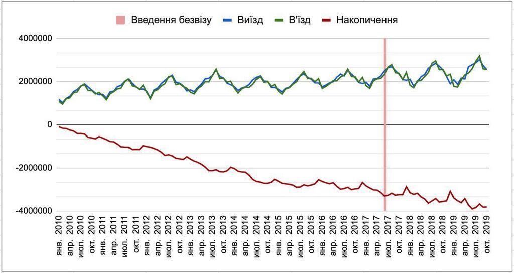 З 2010 року за кордон з України виїхали чотири мільйони її громадян. Крім того, темпи відтоку населення постійно ростуть, адже міграція має циклічний характер. Таку статистику та інфографіку, за даними Оглядача, оприлюднив на своєму Telegram-каналі міністр Кабінету міністрів України Дмитро Дубілет.